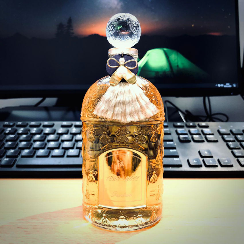 بطری این عطر برگرفته از طرح کلاسیک “Bee Bottle” است که از سال ۱۸۵۳ نماد گرلن بوده. طراحی شیشه با طلاکاری دستی و جعبهای لوکس، آن را برای هدیهدادن یا کلکسیون کاملاً مناسب میسازد.