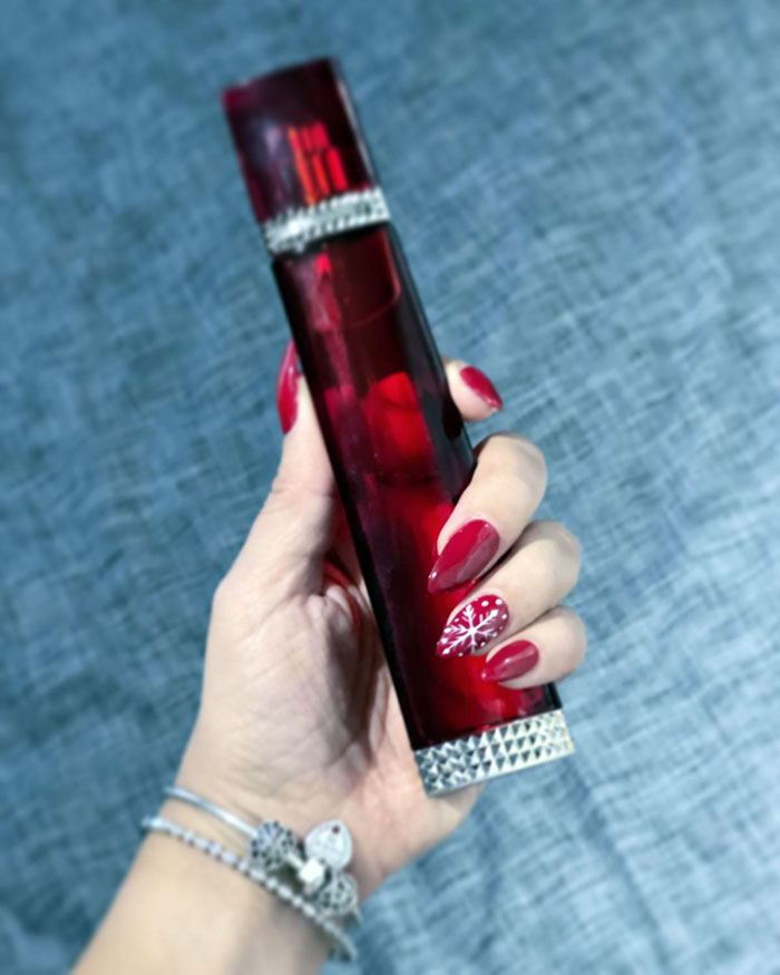 - ظاهری چشمگیر: بطری قرمز شفاف با جزئیات نقرهای، جلوهای بینقص روی میز آرایش شما خواهد داشت.