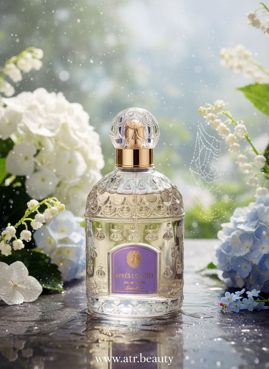 عطر Apres l’Ondee در سال ۱۹۰۶ توسط ژاک گرلن (Jacques Guerlain) طراحی شد. الهام اصلی این عطر، بوی باغی بارانخورده در یک صبح بهاری است؛ جایی که عطر گلهای بنفشه، زنبق و شکوفههای پرتقال با خنکی خاک نمخورده و گرمای آفتاب آمیخته میشوند.